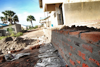 As I get closer to the end of my time in Lira, I don’t know what to write; I always have mixed emotions. The construction should be over by now, but it isn't. We have placed 5 out of 30 rolls of razor wire, the remaining 25 are split between two shipments on their way from Kampala. One of those shipments was supposed to be today, but it wasn't. I have become used to this. Henry still showed up, with one mason, and two helpers. The boys from the orphanage that have been working, Bonny and Walter, were here as well; they put in another day of work. I felt like most of the work today was unessential. but we did finish up the wall. There was one corner that I found that was not connected to the original wall which was built by out first foreman, Nelson. We closed that gap, and then Henry and the others worked on the wall by the main gate. He told me that one side of the wall was lower than the other by almost 3 courses. This was true, but I didn't think too much of it. He wanted it to be right, so they spent a good portion of the day removing the razor wire that we already had placed, and adding a few courses of brick. The project will now fall into Felix’s hands, and he will be responsible for completing the razor wire.